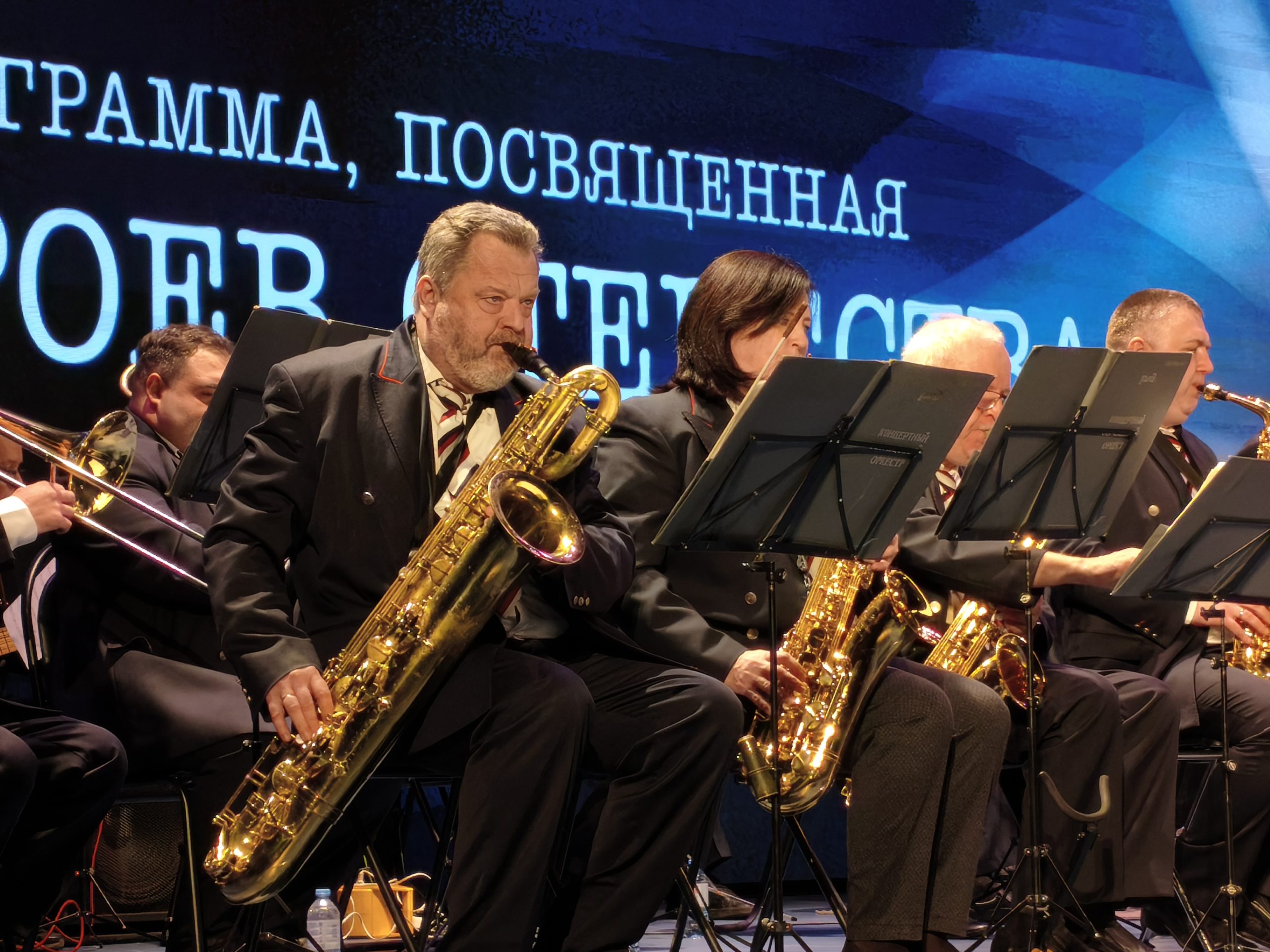 Открылся концерт торжественной увертюрой в исполнении музыкантов оркестра во главе с дирижером капитаном первого ранга Александром Данильченко. Также перед зрителями выступили солисты и лауреаты международных конкурсов Александр Гладков, Светлана Коробкова, Ирина Болотина, Марина Новик, Вера Струнина и Татьяна Сидорова. Настоящим подарком зрителям стало исполнение оркестром под руководством дирижера Дмитрия Курлаева знаменитого произведения, популярного в 1940-е годы в СССР, «Рио-Рита».