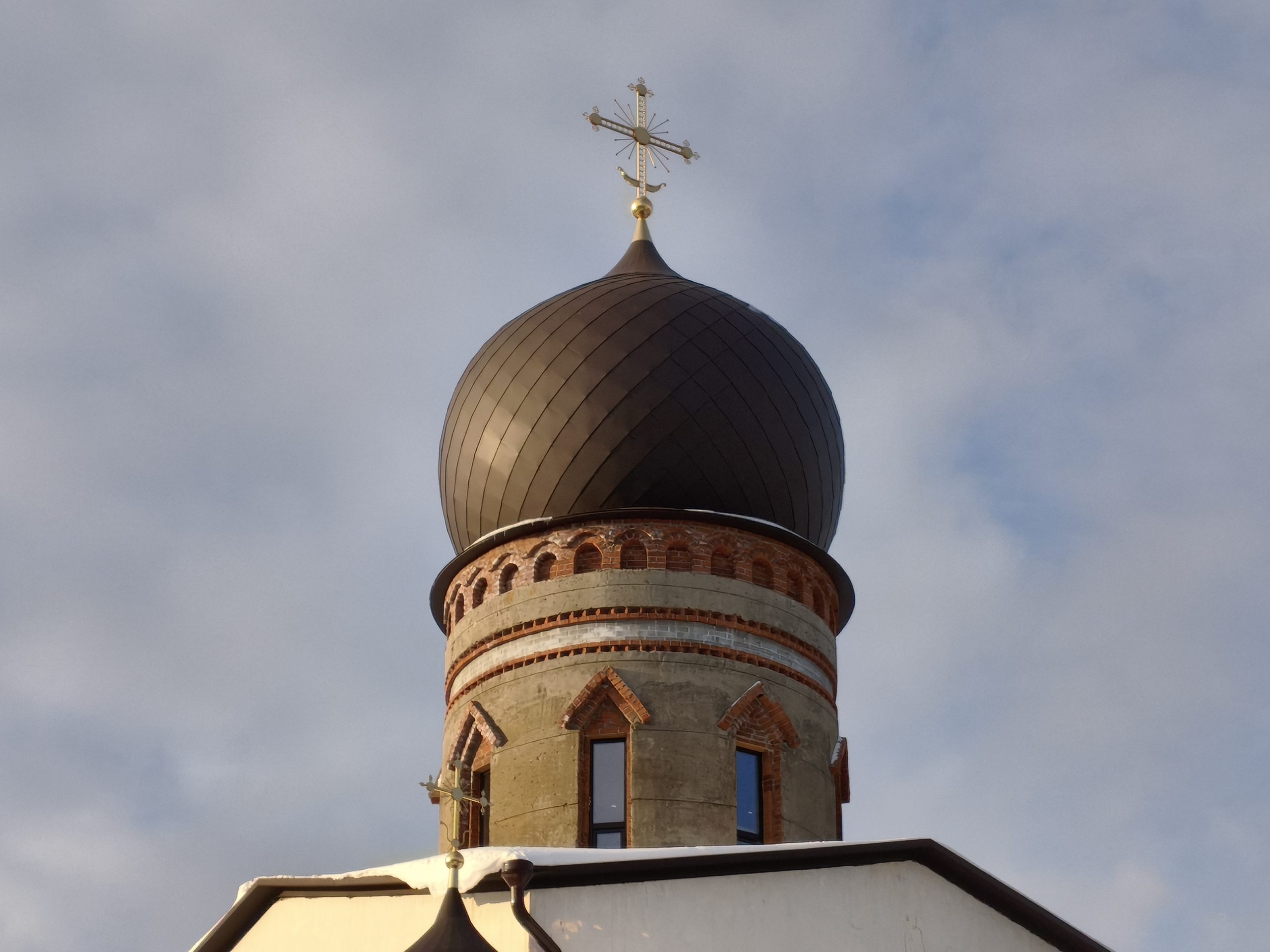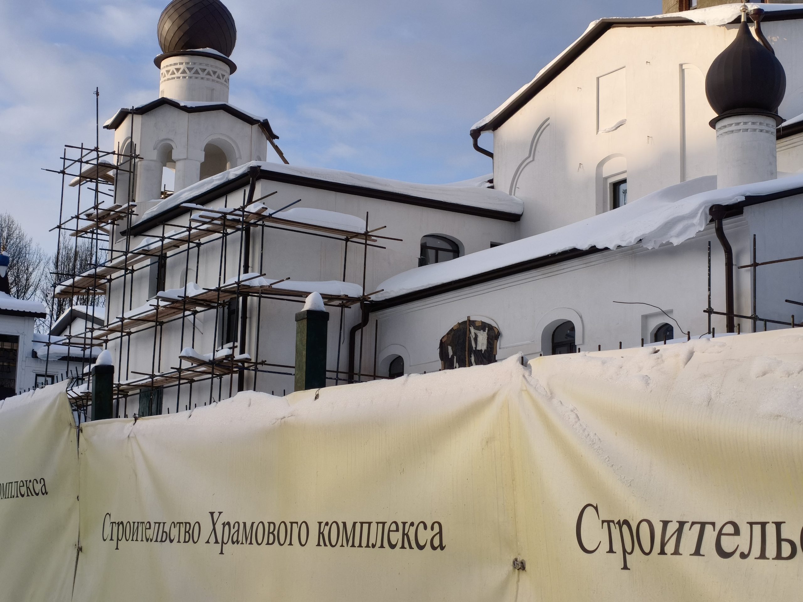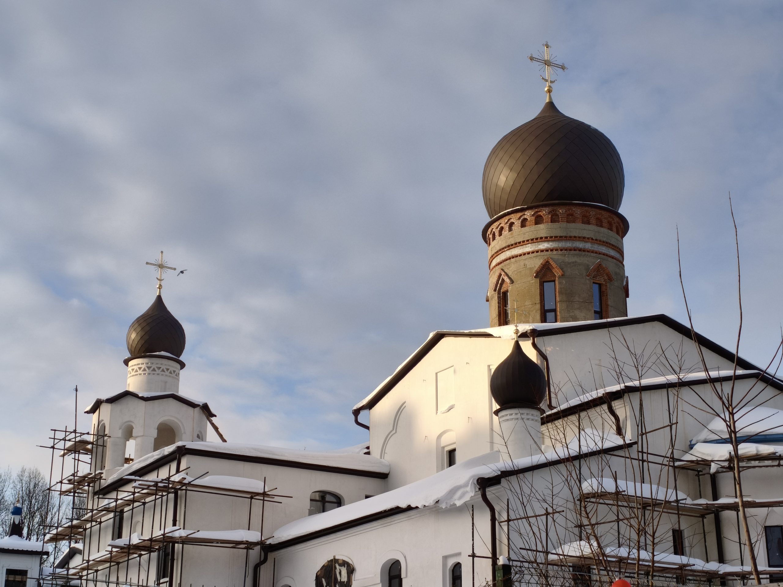 Продолжается строительство второй части храма в честь иконы Божией Матери «Нечаянная радость» в районе Чертаново Северное. Напомним, что возведение церкви на Днепропетровской улице началось в 2017 году, а уже в апреле 2019 года здесь отслужили первую Божественную Литургию. На сегодняшний день, 12 февраля, ведутся работы по отделке фасадной части будущего здания храма, на башни установлены купола.